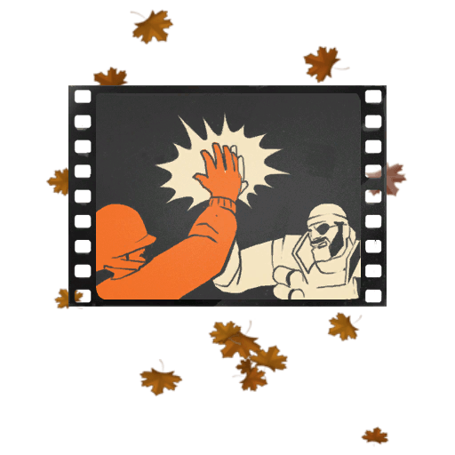 This taunt features a cinematic frame with two characters enthusiastically performing a high five. The scene is accented by falling autumn leaves, adding a seasonal touch to the animation.