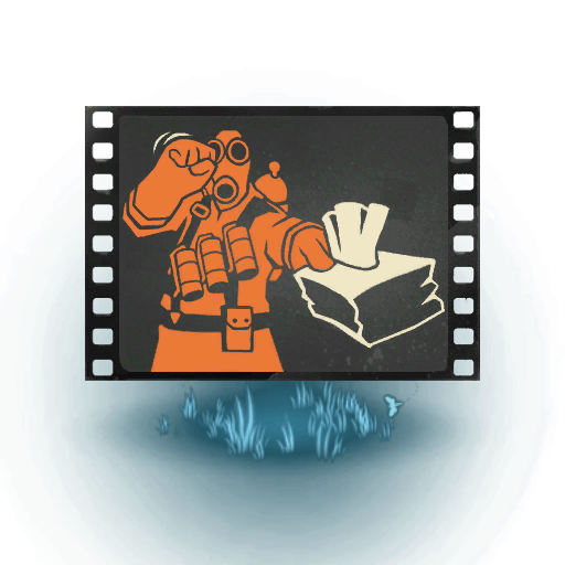 This taunt features Pyro performing a comforting gesture, offering a tissue to an unseen character. The animation is depicted on a film strip with a glowing blue aura beneath it.