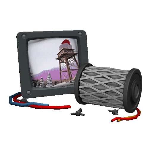 This Strange Filter is designed for the Frostwatch map, adding a unique tracking element to your gameplay. The tool features a monitor displaying a snowy scene with a watchtower, complete with a festive touch of a Santa hat. Accompanied by a cylindrical filter and colorful wires, it offers a distinct visual appeal for collectors and players alike.