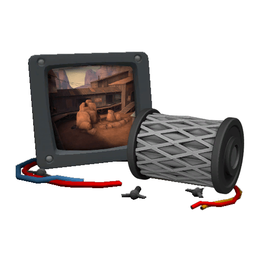 This tool features a filter designed for tracking stats on the Hoodoo map. It includes a visual representation of the map on a monitor screen, accompanied by a cylindrical filter component. The design is completed with scattered wires and screws, adding to its technical aesthetic.
