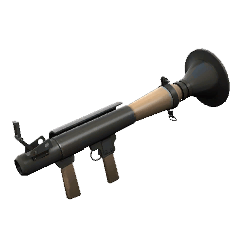 This rocket launcher features a rugged, military-inspired design with a dark metal barrel and tan wooden grips. The Professional Killstreak variant adds a subtle sheen and tracks killstreaks during gameplay, often accompanied by unique visual effects. It is designed for use by the Soldier class.