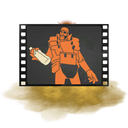 This taunt features the Demoman holding his signature bottle, depicted in a stylized, orange silhouette against a filmstrip background. The "Solar Scorched" effect adds a dramatic, sunburned scorch mark above and beneath the film cell, with a glowing, fiery appearance. The overall look combines a cinematic theme with a burnt, sun-drenched motif.