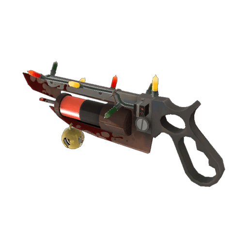 This saw is decorated with a string of colorful holiday lights along the top, giving it a festive appearance. The handle and blade retain their standard metallic look, while a small golden bell dangles from the base. Splashes of red add a touch of seasonal flair to the otherwise utilitarian design.